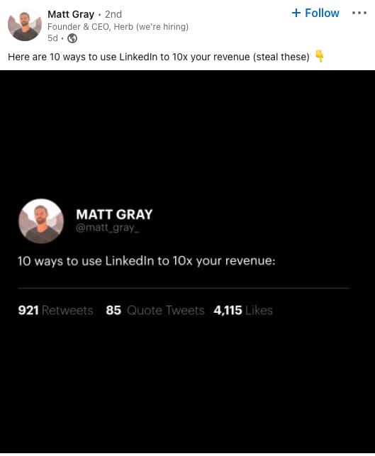 Matt Gray’s 10 ways to grow your LinkedIn revenue are simple and effective. This is a great guide for those on their LinkedIn journey or want to start. It's super valuable and is available for free!