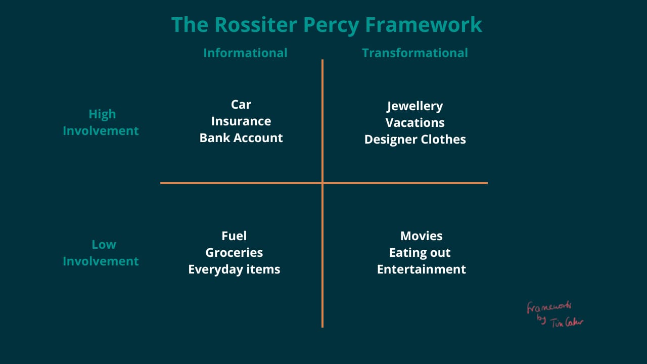 The Rossiter-Perry framework is useful to understand your target audience, brand sentiment, and advertising campaigns. Each quadrant has an involvement & emotion as factors for your customers. You have to understand which quadrant your product is in and plan a campaign.