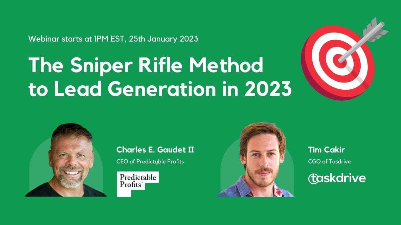 This week I will be in a webinar with Charles E. Gaudet II talking about the Sniper Rifle method to boost your lead generation and growth within your business. You can ask questions by attending the webinar here. Join us for this conversation and take your lead generation strategy to the next level!