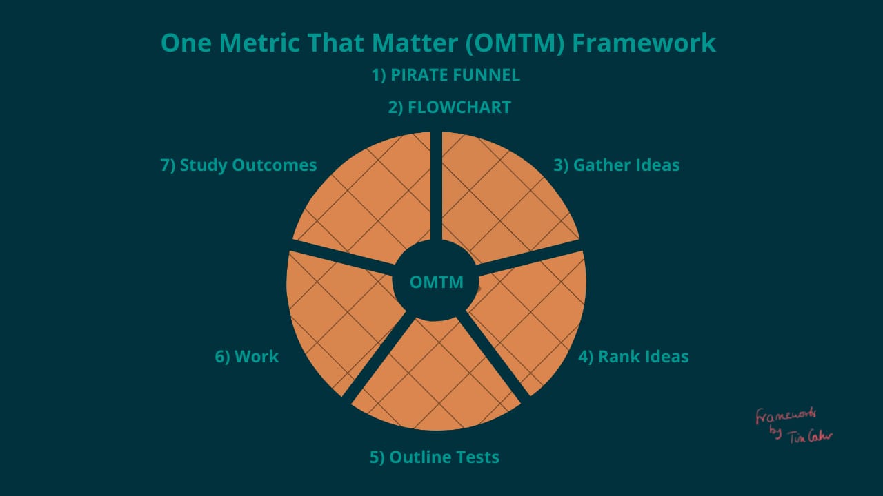 The OMTM (One Metric That Matters) framework is a growth marketing framework that focuses on identifying and tracking a single key metric that will drive the growth of your business. The idea behind the OMTM framework is that by focusing on a single metric, you can prioritise your efforts and resources to achieve the most significant impact on growth.