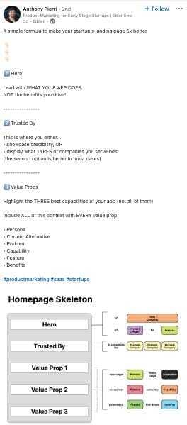 Make your startup landing page 5x better with this simple yet effective skeleton shared by Anthony Pierri. When starting out you need to have a simple structure and then you can add and change as per your needs. Great stuff!